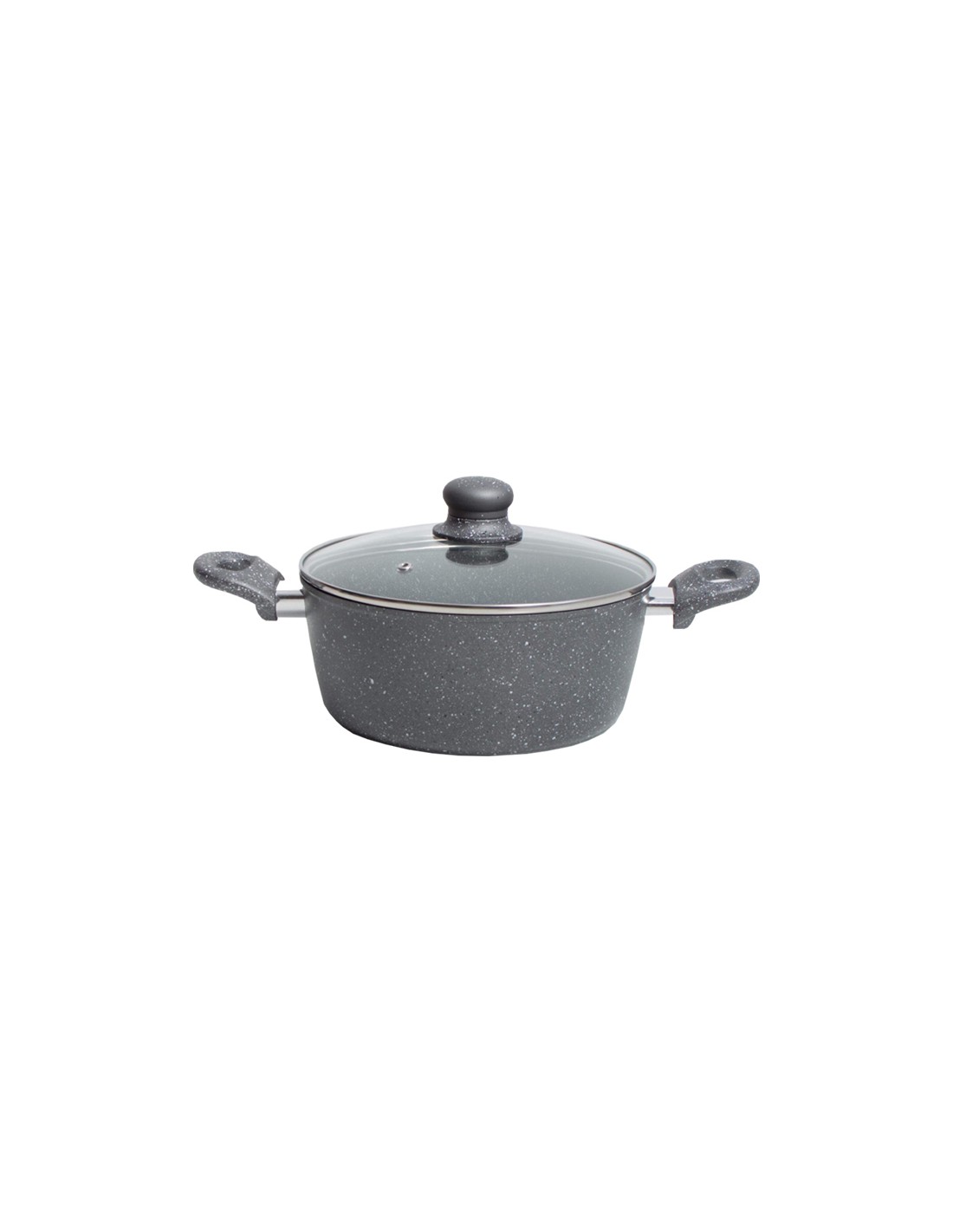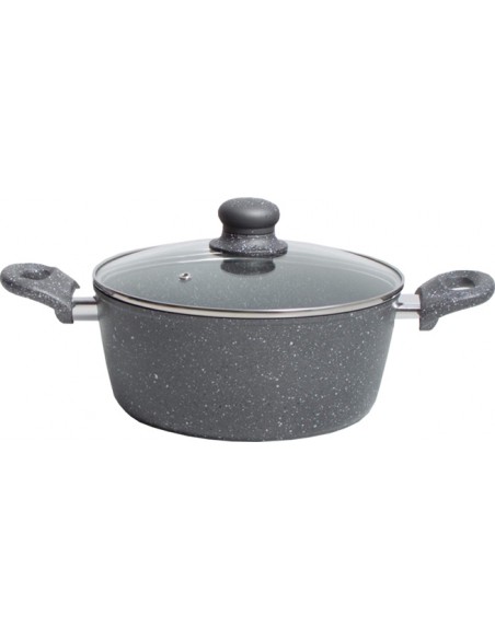 Κατσαρόλα γρανίτης από αλουμίνιο και με τρεις στρώσεις μαρμάρου,με μαλακή εργονομική λαβή,γυάλινο καπάκι,4 mm πάχους,εξαιρετικής ποιότητας για υγιεινό μαγείρεμα.