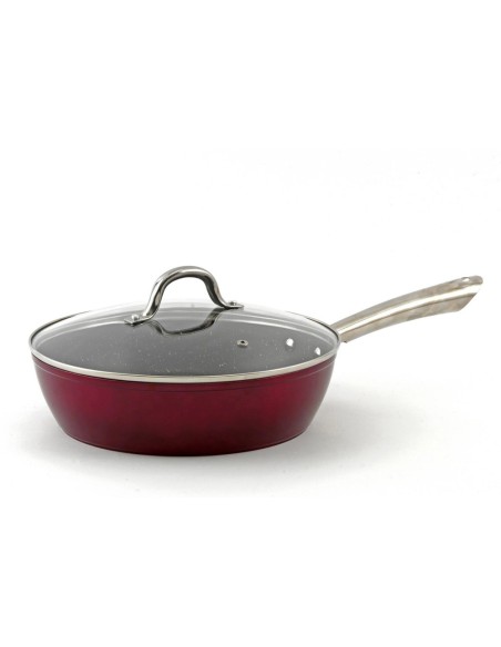 Τηγάνια γρανίτης από αλουμίνιο και με τρεις στρώσεις μαρμάρου,με μαλακή εργονομική λαβή,γυάλινο καπάκι,4 mm πάχους,εξαιρετικής ποιότητας για υγιεινό μαγείρεμα.